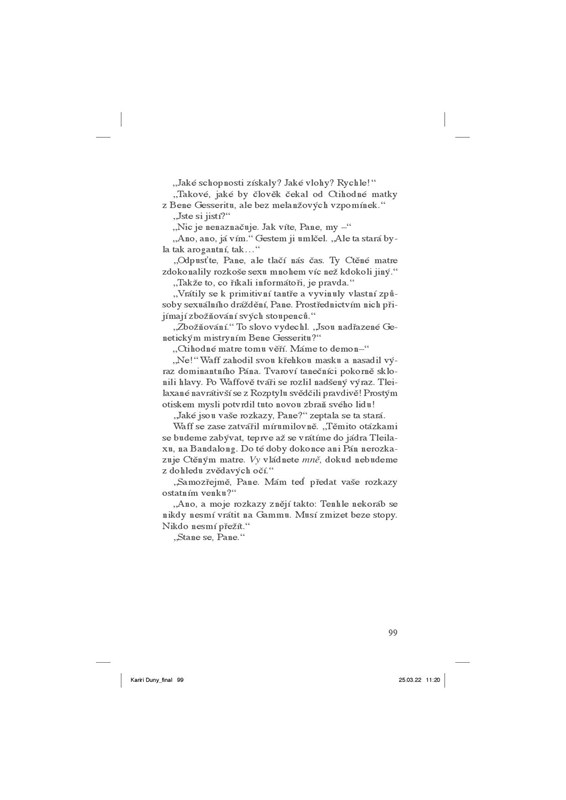 Pouštní planeta Arrakis byla zničena. Pod vedením Matky představené Darwi Odradové kolonizuje Bene G...