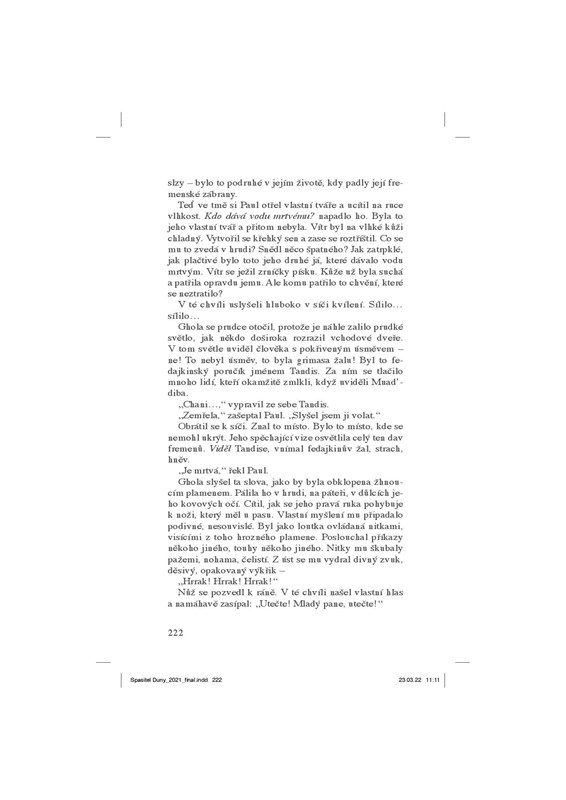 Paul Atreides mizí v poušti. Za sebou zanechává Arrakis, v bezútěšné poušti se objevuje stále víc ze...