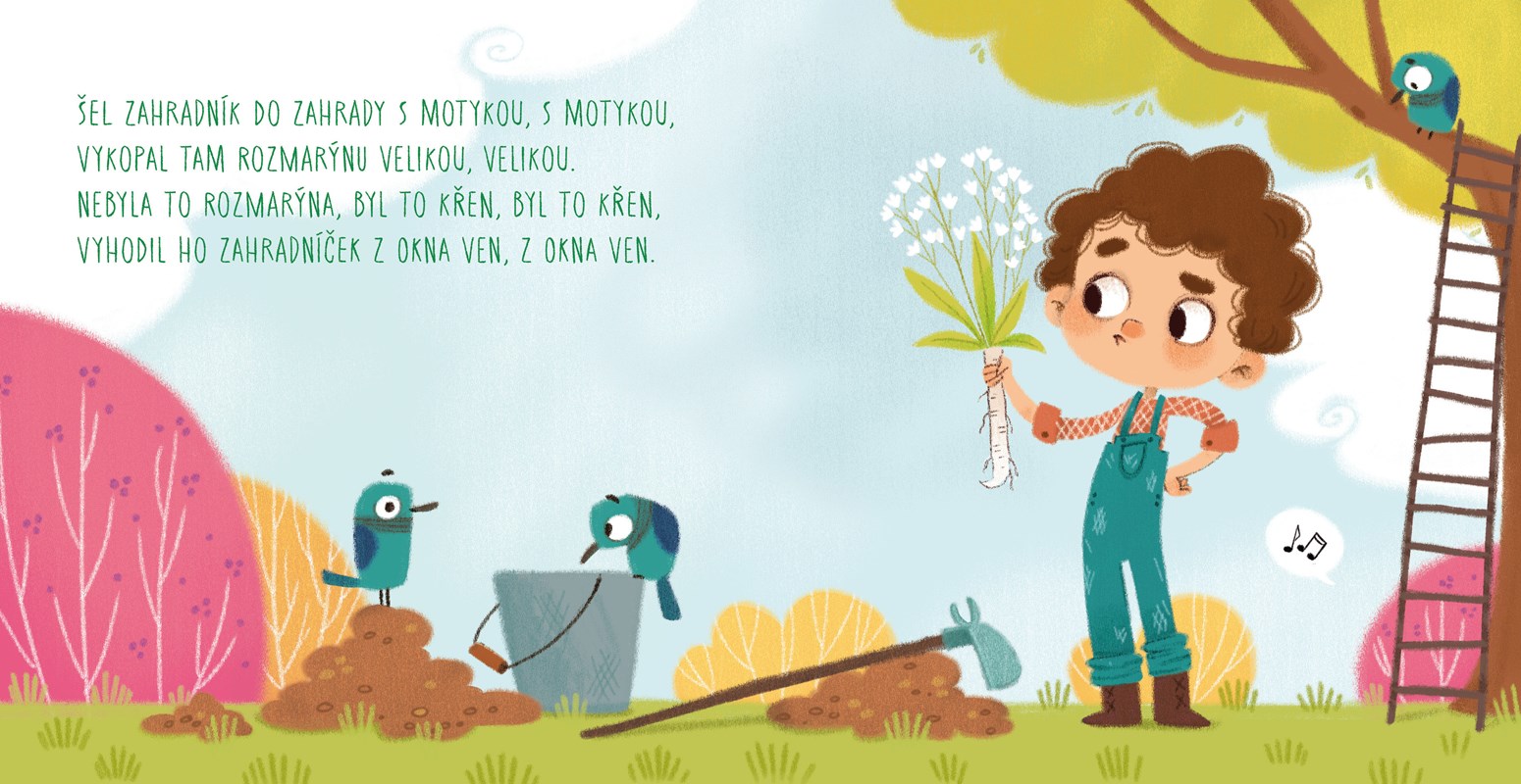 Známé české písničky ožívají na stránkách této kouzelné barevné knížky. Díky roztomilým ilustracím se malé děti seznámí s příběhy hlavních postav nejoblíbenějších písniček a jejich povoláními. Po stisknutí tlačítka si mohou poslechnout nazpívané příběhy, které možná už dříve slyšely od svých maminek a babiček.