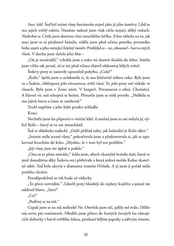 Sera se konečně osvobodila od Kolise a vrátila se ke svým nejbližším. Nyktos ji miluje celou svou bytostí – a nepochybuje o tom, že je způsobilá stát se královnou bohů. Nejdřív však musejí přesvědčit ostatní bohy, aby je podpořili v boji proti Kolisovi. Jakmile však Sera odhalí pravdu o své pokrevní linii a proroctví, pochopí, že existuje daleko horší hrozba. Mezi bohy se schyluje k rozhodující bitvě. Dokážou Sera a Nyktos zastavit Kolise dřív, než zničí říše a vše zmizí v ohnivém pekle krve a popela?