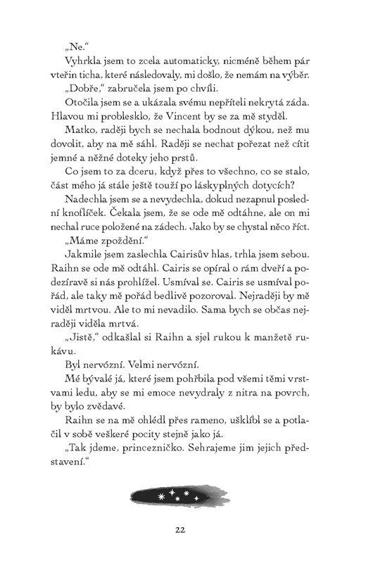 Turnaj Kejari skončil a Oraya zjistila, že celý její život se zakládal na lži. Zůstala jí jediná jistota: nemůže věřit nikomu, obzvlášť ne Raihnovi. Když jí nabídne tajné spojenectví, rozhodne se ho přijmout – jen tak může získat zpět své království a pomstít se. Aby toho však dosáhla, bude muset využít pradávnou sílu spojenou s největším tajemstvím svého otce. Oraya rozplétá pravdu o své minulosti a stojí před zásadním rozhodnutím. Zvolí si moc vykoupenou krví, nebo lásku, která by mohla být její zkázou?