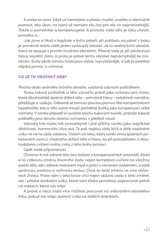 Cviky v teto knize jsou určeny všem, kdo si chtějí zlepšit pohybové návyky a zmírnit problémy vzniklé špatným držením těla nebo odstranit zatuhlost svalů a bolesti s ní spojené.