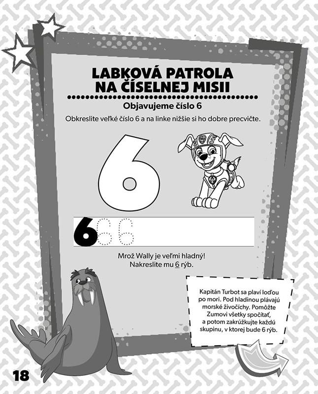 Vydajte sa s Labkovou patrolou na číselnú misiu. Pomocou bambusovej paličky zoškriabte čiernu vrstvu a odhaľte obrázky v knižke. Na každej stránke nájdete hravé úlohy, pri ktorých si precvičíte počítanie, číslice a prvé príklady. Keď nebudete vedieť ako ďalej, ochotné labky vám pribehnú na pomoc! Vďaka nim bude každá úloha hračkou a učenie prvých čísel skvelou zábavou.