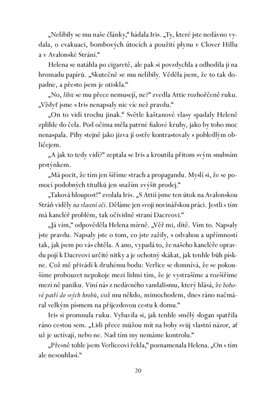 Od chvíle, kdy Roman sestoupil do Dacreovy říše, si nemůže vybavit nic ze své minulosti. Aniž by tušil, že se stal pěšákem ve smrtelně nebezpečné hře, začne psát nové články – pak ale dveřmi jeho skříně dorazí dopis. Komunikace s tajemnou pisatelkou, kterou není nikdo jiný než Iris, ho postaví před složitou volbu: Zůstane věrný mocnému bohu, nebo Dacrea zradí? A zatímco svět pohlcuje temnota, Roman a Iris se znovu nevyhnutelně sbližují. Poslechnou svá srdce a změní spolu vývoj války?