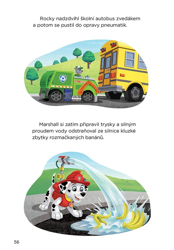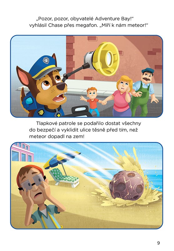Statečné tlapky už se ženou! Když je někdo v nouzi, tým hrdinů z Tlapkové patroly přispěchá na pomoc. Vydejte se za neohroženými záchranářskými štěňaty do Adventure Bay a vyrazte s nimi na další zásah! V této knížce si můžete přečíst, jak oblíbení hrdinové zachraňovali školní autobus v Adventure Bay, co se stalo, když se v pobřežním městečku objevil obrovský robot, a jaké překvapení tlapky přichystaly pro Alexova dědečka.