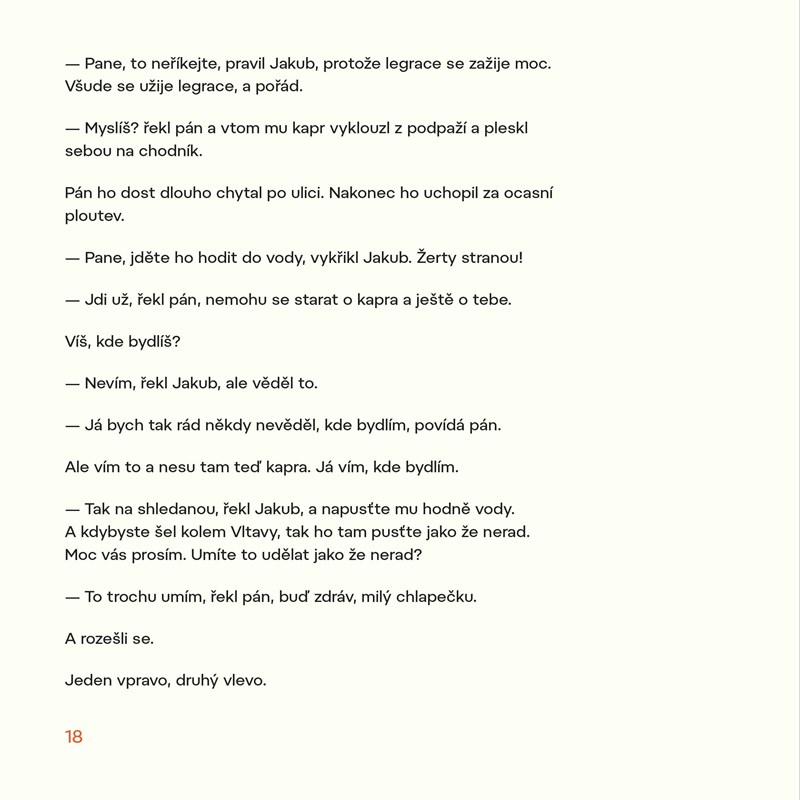 Vánoční, tak trochu pohádkový příběh o tom, co všechno může prožít malý chlapec při bloudění zasněženou Prahou. Malý Kubík se jednoho Štědrého dne ztratil svému tatínkovi. A protože příliš nespěchal domů, procházel se vánoční Prahou. Potkal pána s kaprem, netýkavou holčičku, co jde tatínkovi pro pivo, posledního pražského lampáře, navštívil peklo (vlastně sklad jedné hospody na Václavském náměstí), ale hlavně se seznámil s pošťákem Klementem a jeho koníkem Karličkou. Klement mu věnoval podivuhodné loutkové divadélko, ve kterém jsou loutky nejen Jakoubka samotného, ale všech, které toho dne potkal, včetně snové Andersenovy Holčičky se sirkami..