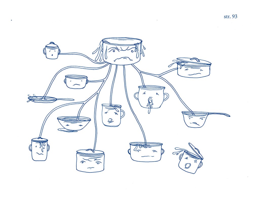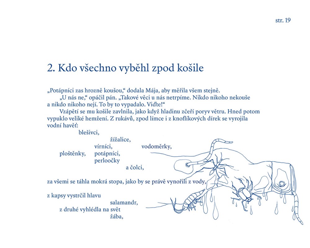 Postavy knihy Anička, mluvící potok a další chovanci ústavu paní Majerové (Meander 2019), s nimi dům u potoka a město Černošice se vracejí na scénu v nové knížce Petra a Evy Koťátkových, v příběhu, který tentokrát zcela jinak, ale stejně tajuplně oživuje dávnou historii a nechává ji zasahovat do událostí našich časů. Anička a její mladší sestra Mája se setkají na zahradě s neznámým starým pánem, z jehož rukávů a kapes se rojí potápky a další vodní havěť. Ve stejné chvíli zjistí, že zmizel potok, který protékal zahradou. Jak se vysvětlí o něco později, potok byl vypuzen ze své strouhy, vklouzl do šatů, které si kdosi schoval v houští, a hledá pomoc u spřízněných duší. Anička, Mája, záhadná paní Majerová, psí slečny Berta s Lízou, želví mládenec Kryšpín, Veverčák (lesní veršotepec) a potok v lidských šatech společně odkrývají události z časů, kdy v domě u potoka býval sirotčinec. S nimi se dozvídáme o zpustlých drátenících, o tlupě hrnců, která obsadila město, o dvou nenasytných knihách, které kdysi způsobily zánik sirotčince, o tom, jak potok zničil plechovou flotilu, a o deštníku, který v rukou dráteníků znamená ohrožení všech. Dávné události se přelévají do současných dějů, vrcholí zmizením Aničky a Máji, jejich únosem do chatrče, která se čas od času mění v lesní zámek, seznámením s ježibabou, z níž se zas stává zámecká paní, vzpourou hrnců, bitvou v černošickém lese, zkázou dráteníků a návratem potoka do jeho strouhy.