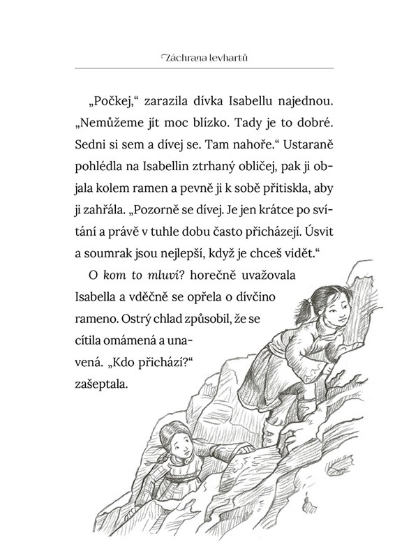 Během výletu do zoo je Isabella jediná z celé rodiny, komu se podaří zahlédnout ve výběhu plachého sněžného levharta. Zvíře ji fascinuje natolik, že se rozhodne dozvědět se o něm co nejvíce. Následující noci se Isabella probudí a zjistí, že se ocitla v Mongolsku – v zemi, kde sněžní levharti stále žijí ve volné přírodě. Seznámí se tam se stejně starou dívkou a společně s ní se vydává vstříc vzrušujícímu dobrodružství, jehož cílem je zachránit samici sněžného levharta a její dvě mláďata. Podaří se dívenkám zachránit šelmy před lovci, kteří jsou jim na stopě?