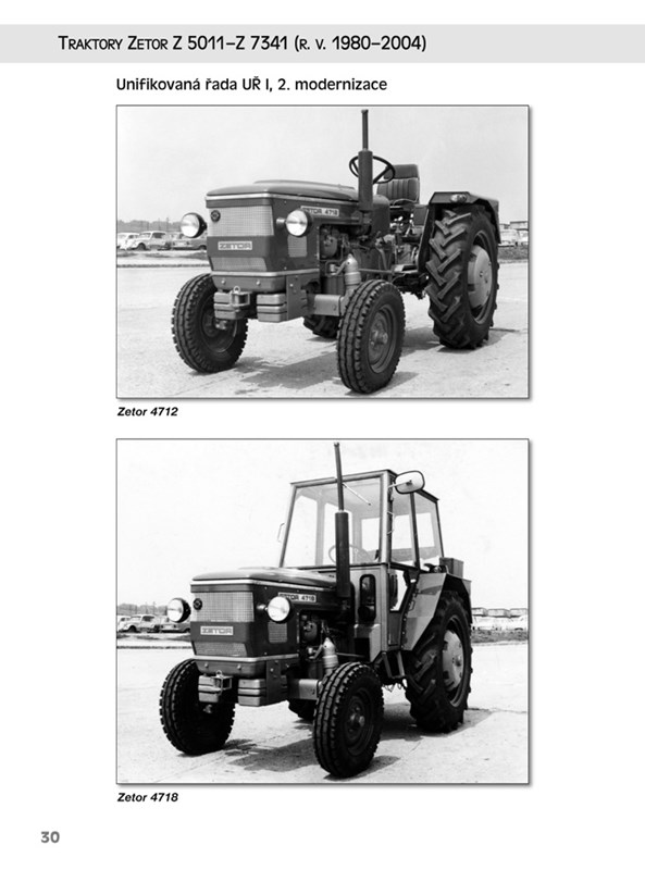 Příručka pojednává o desítkách typů traktorů první unifikované řady (modely Z 5011 - Z 7341), vyráběných v rozmezí let 1980 až 2004. Na téměř 400 stranách najdete historii traktorů Zetor včetně fotografií polopásových modelů od roku 1946, časově utříděný přehled výroby, zajímavosti z konstrukce traktorů, informace z dobové literatury a technický popis vybraných konstrukčních celků včetně kabin traktorů.