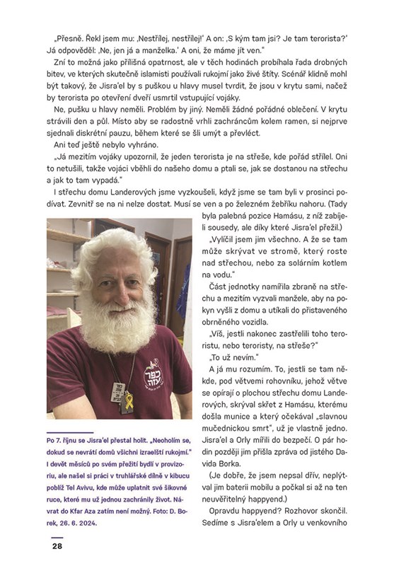 Je 6. října před půlnocí a válečný zpravodaj David Borek leží v hotelové posteli v Kyjevě. Usíná a hlavou mu víří zcela všední myšlenky… O den později se však probouzí do brutálního rána. Teroristé Hamásu napadli Izrael a rozpoutali nejhorší masakr v dějinách státu. Už nic nebude jako dřív. Následuje rychlý přesun z jedné války do druhé a 12 měsíců novinářské práce jako zpravodaj ČT v Izraeli. Syrová reportážní publikace s barevnými fotografiemi vás provede událostmi, které se odehrály během roku po útoku.
