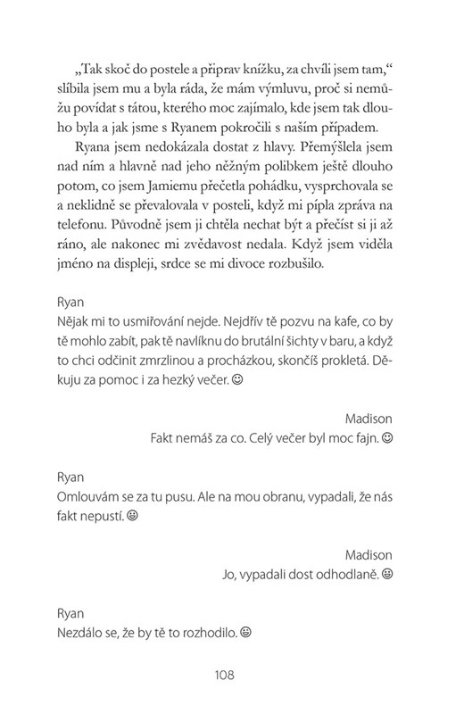 Madison by na první setkání s Ryanem nejraději zapomněla. Dodnes netuší, co ji to napadlo, zachraňovat úplně cizího – i když tak sexy – kluka. Ti dva by nemohli být rozdílnější. Zatímco od Madison se čeká, že po vysoké převezme otcovu úspěšnou právnickou firmu, po Ryanovi všichni chtějí jen hvězdné výkony v univerzitním basketbalovém týmu. Jenže Madison už nehodlá skákat, jak její otec píská, a Ryan se také chce vydat jiným směrem. Ani jeden z nich však nepočítá s láskou, která jim pořádně zamotá hlavu.