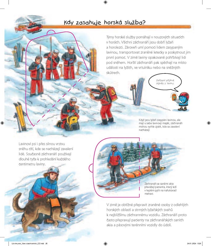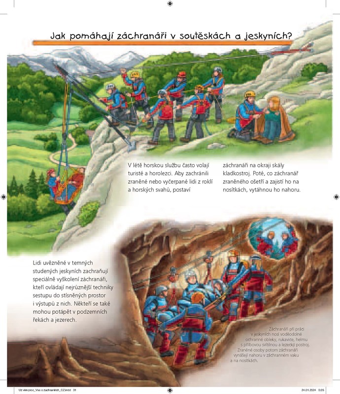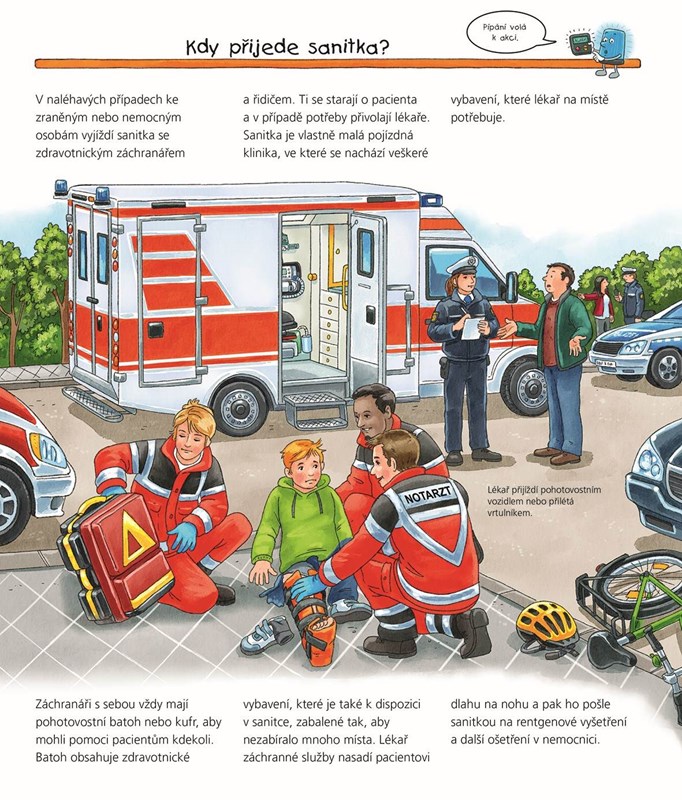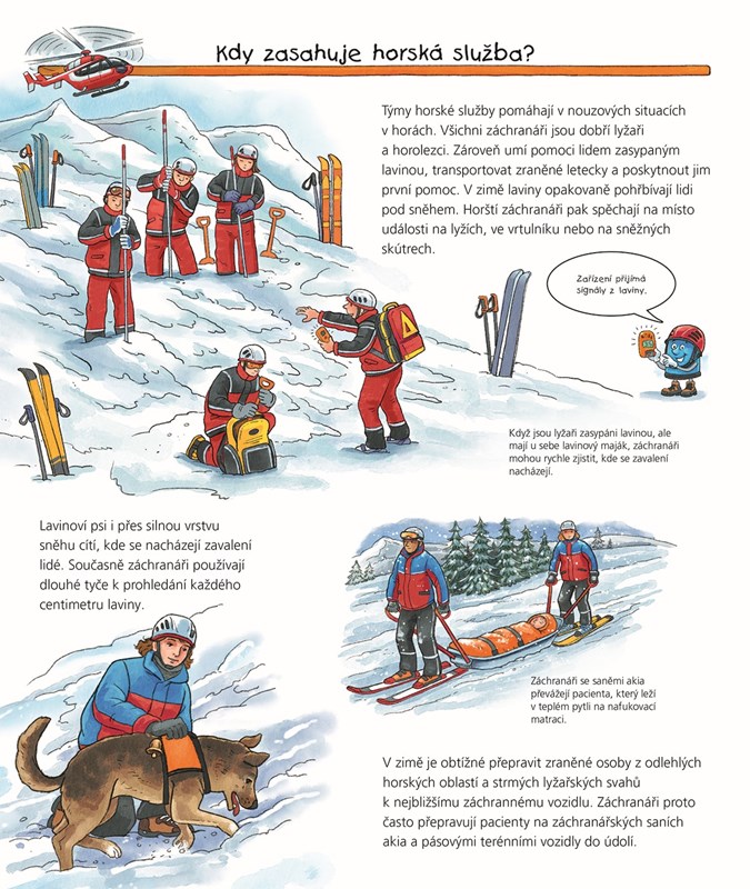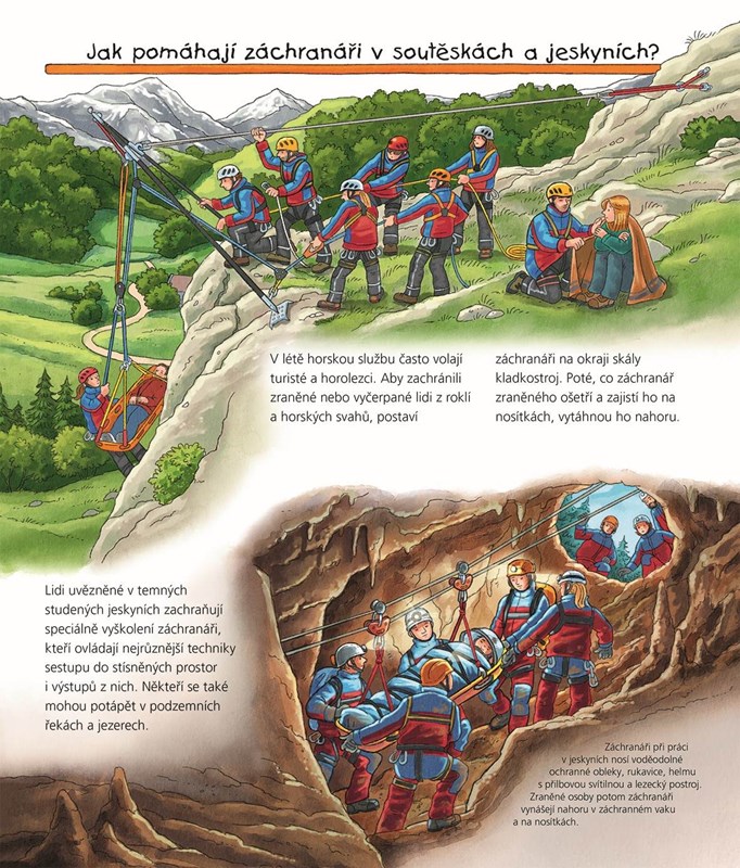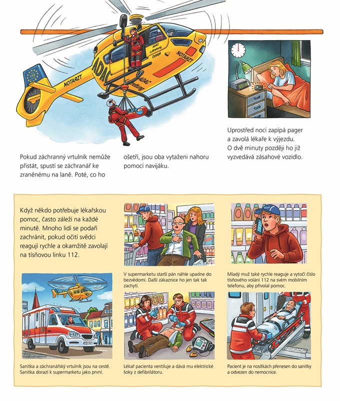 Jémine! Nákladní cisterna se srazila s těžařským vozem. Ale záchrana už je nadosah. Hasiči, technici a policie zajišťují místo nehody, zatímco lékař záchranné služby a jeho kolegové ošetřují zraněné. Ať už jde o povodeň, zemětřesení nebo bankovní loupež, mnoho žen a mužů je vždy připraveno pomoci! Tato kniha představuje kromě samotných záchranářů také jejich zásahová vozidla i speciální vybavení.