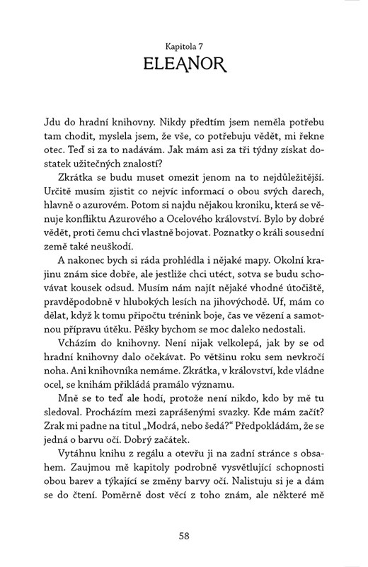 Princezna Eleanor je od narození ztělesněním zla. Stejně jako její otec a bratr vládne darem, který svému nositeli propůjčuje schopnost způsobovat nepředstavitelné utrpení. Díky němu nezná soucit a jediné, co ji zajímá, je požitek, který jí utrpení ostatních přináší. Osudový pohled do očí jednoho vězně ale vše změní. Aniž by tušila, jak je to možné, Eleanor zčistajasna trpí bolestí druhých, a to i tou, kterou mnohdy sama způsobuje. Nechtěná proměna jí ukazuje krutou pravdu o její zemi, ale i o ní samé. Probudí v ní touhu po změně. Touhu po revoluci. Pokud ale někdo přijde na to, co doopravdy cítí, bude ji to nejspíš stát život. Co dělat, když jediní možní spojenci sedí v podzemní kobce a čekají na smrt?