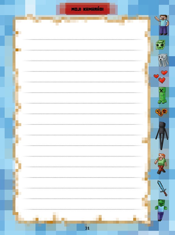 Speciálním inkoustem si do svého minecrafťáckého zápisníku napiš všechny důležité informace o sobě, tvé rodině a kamarádech nebo mu svěř svoje tajná přání, zajímavé vzpomínky a nezapomeň ani na hrozné průšvihy. Díky speciálnímu peru a kódovacímu zámku budou všechna tvoje tajemství v naprostém bezpečí!
