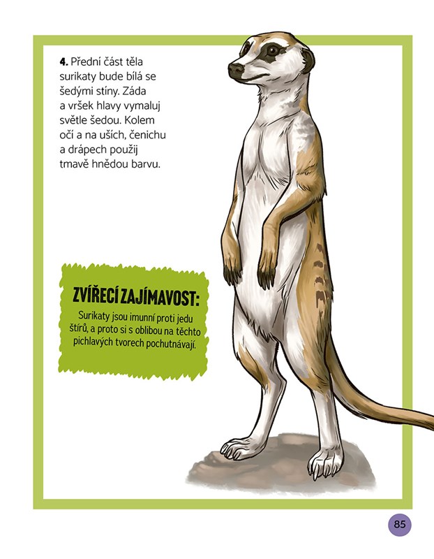 Díky této knize dokážeš krok za krokem ztvárnit podoby rozmanitých zvířat žijících v savaně, lese, džungli nebo na poušti. Zachyť každé z nich v dynamickém pohybu, vystihni jeho charakteristickou anatomii a pak ho zasaď do přirozeného životního prostředí. Navíc se o jednotlivých zvířatech dozvíš spoustu zoologických zajímavostí!