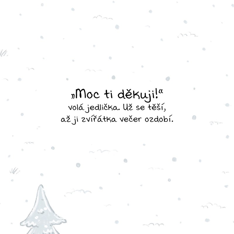 Vánoce se kvapem blíží! Jedlička se už moc těší, až ji zvířátka společně ozdobí. Jenže má větvičky samý sníh. Veverky chtějí jít sáňkovat a čekají, až jim někdo odstartuje závod. Zajíčci si postavili zaječího sněhuláka, kterému vítr odfoukl oblečení. Ale kam?