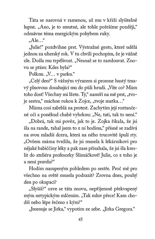 Autorka bravurně propojila dvě zdánlivě nesouvisející linky. Ta ze současnosti pro mě byla až na pár drobností odpočinková. Kamilu jsem si oblíbila a fandila jsem jí. Vnitřně jsem nadávala, když se jí nedařilo nebo se hnala do problémů. Jenže tato linka střídala tu válečnou. Juliinu, která mě rozsekávala od prvních stránek. Víte, autorka nepopisuje nějaké brutality, nezakládá své vyprávění na příšerných krvavých scénách. Ona se věnuje hodně pocitům daných postav. Co musela prožívat Juliina maminka, když stála před pro mě nepředstavitelným rozhodnutím. Tato scéna ve mně navždy zůstane. Pak dočtete, řeknete si, jak s vámi celý příběh zamával, otočíte stránku a tam….osudy postav z knihy a to mě dorazilo úplně.