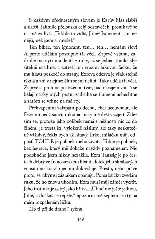 Upřímně říkám, že se mi historická linka líbila víc. Ač to zní divně, když byla z válečných let, ale autorka ji zpracovala neuvěřitelně citlivě. Já nezapomenu na Davídka. Nikdy. Strašně mě to sebralo.