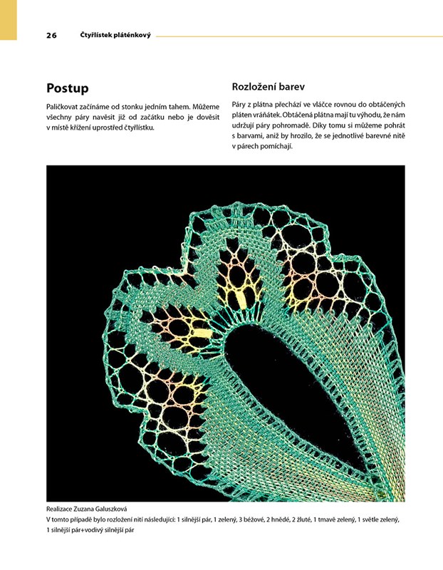 Každý jednotlivý motiv má čtenářům představit nějaký neobvyklý prvek, spojení, případně nabídnout jiný pohled na řešení technických nuancí. Na mnoha fotografiích a nákresech jsou k dispozici všechny potřebné informace k upaličkování vzorů – dírky, netradiční okraje, nový typ rohu a další.