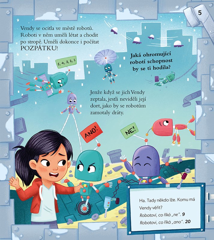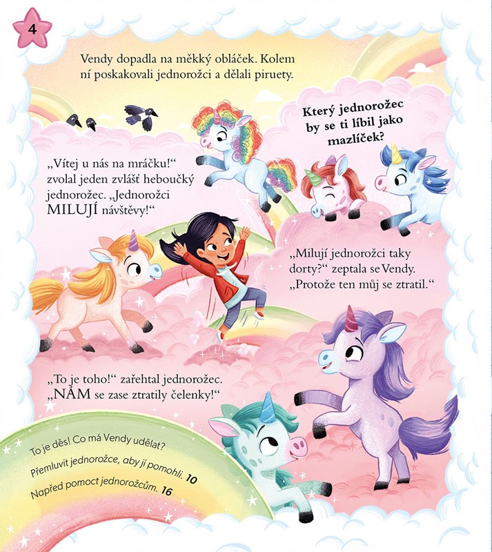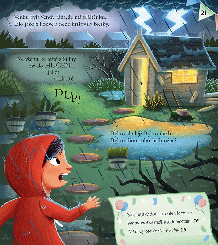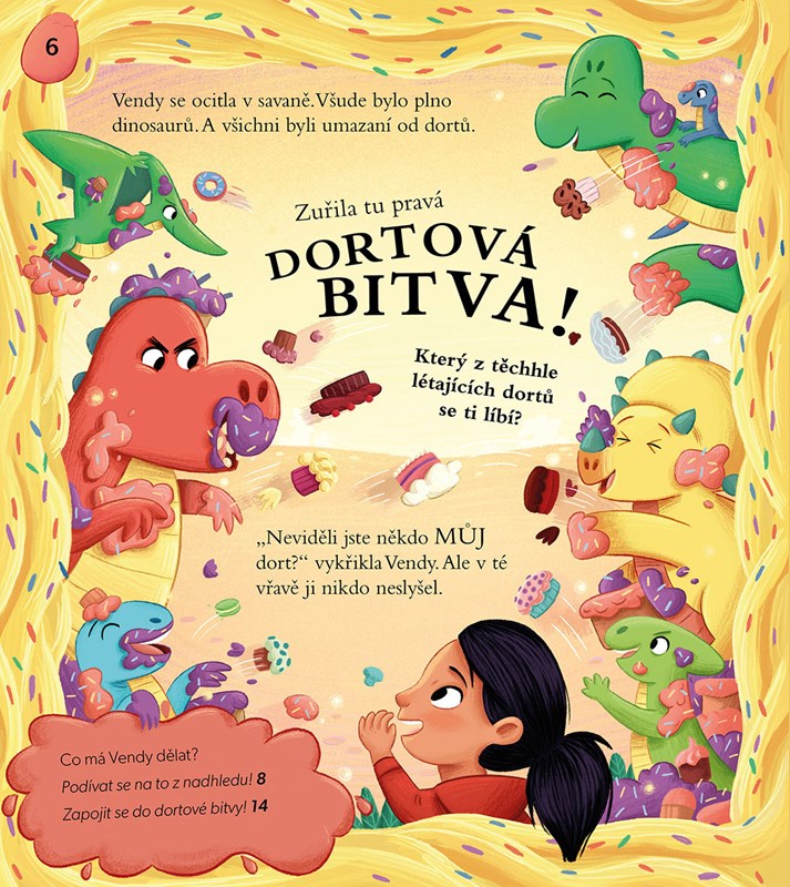 Vendy má dnes narozeniny, jenže dort, který jí peče táta, ZMIZEL. Divné, že? Vendy potřebuje TVOU POMOC, aby ho našla! Snědli dort dinosauři? Odnesli ho roboti? Nebo ho ukradli jednorožci? Objev ne jedno, ale hned TŘI světy se spoustou zábavy v tomto pěkně oslazeném dobrodružství – plném nečekaných překvapení a nezapomenutelných postav. A na každé stránce rozhodneš jedině TY, jak bude příběh pokračovat!