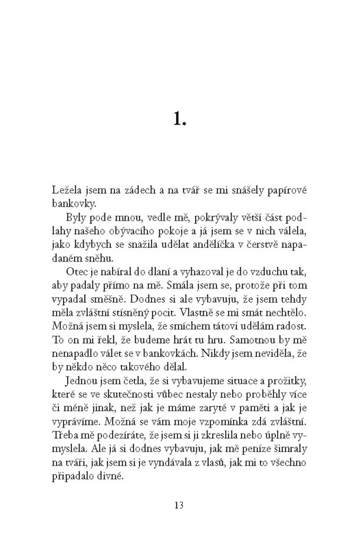 Když bylo Almě třináct, v poválečném Československu byla vyhlášena měnová reforma a její rodinu to zničilo. Doktorská dcerka zvyklá na život ve velké vile se najednou ocitla v maličkém přízemním bytě se dvěma babičkami a špatným kádrovým profilem. Alma ale nebyla holka, co sedává s rukama v klíně. Tohle je její příběh. Příběh ženy, která se v časech totality vlastními silami vydrápala mezi nejbohatší stínovou elitu. Žila v pohádkovém luxusu, ale nejvíc toužila po něčem, co nejde koupit… Román od autorky historických bestsellerů zve do časů poválečného a normalizačního Československa a jeho šedé ekonomiky.
