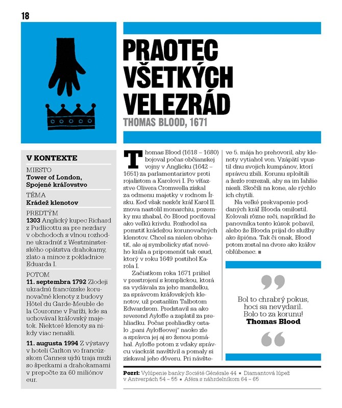 Kto sú najväčší vrahovia, zlodeji a podvodníci všetkých čias? Ako prišiel Jack Rozparovač k svojmu strašnému menu? Kto „predal“ eifelovku a ako sa lupičom podarilo vykradnúť trezor v Hatton Garden? Táto kniha vám dá odpovede nielen na tieto otázky. Opisuje viac ako sto svetovo najznámejších kriminálnych činov.