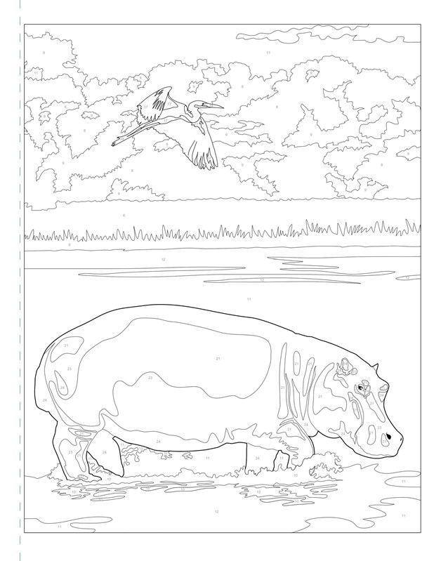 Čísla na obrázcích odpovídají očíslovanému barevnému klíči na vnitřní straně této záložky, takže stačí jen zvolit sadu pastelek podobající se uvedeným barvám a začít! Práci může usnadnit označení každé pastelky odpovídajícím číslem.