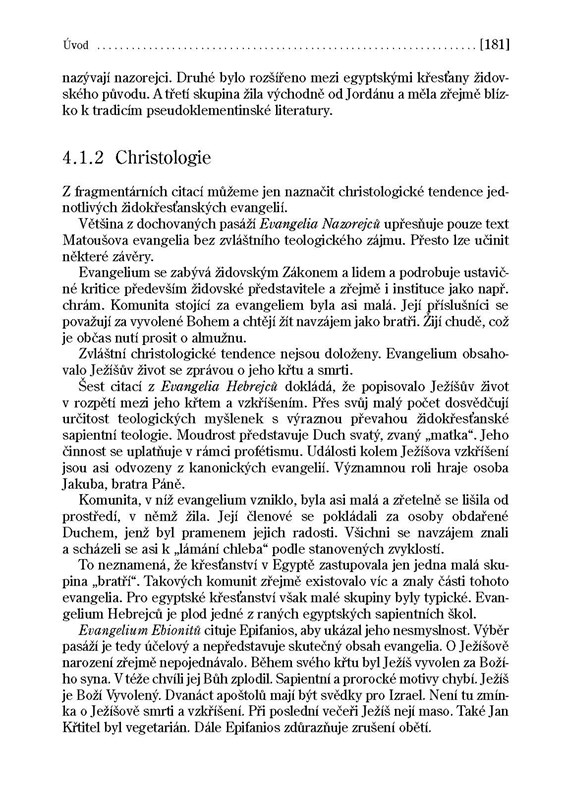 Apokryfní texty vznikaly již v počátcích křesťanského písemnictví a nebyly z různých důvodů zařazeny do biblického kánonu: často pro svůj pozdější původ, většinou však pro odchylný výklad nejstarších křesťanských tradic. Kniha obsahuje apokryfní evangelia v užším smyslu slova, tedy spisy evangelijního typu nebo spisy jiného druhu, které se šířily pod názvem „evangelium“ a vznikaly do konce 2. století po Kr. Mezi ně patří i nejstarší fragmenty Ježíšových výroků, které nepocházejí z biblických evangelií, či oblíbené Tomášovo evangelium. Na mnoha místech sice jen popustily uzdu obrazotvornosti tehdejšího lidového křesťanství, nicméně odrážejí i některé závažné problémy své doby (vztah k jiným náboženským a filozofický proudům, hledání lidových forem křesťanské zbožnosti). Z řeckých, latinských, koptských a syrských originálů přeložili a úvody a komentáři opatřili J. Brož, R. Dostálová, J. A. Dus, M. Havrda, L. Kopecká, Z. Kratochvíl, P. Peňáz, D. Peňázová, P. Pokorný a Z. Vlčková.