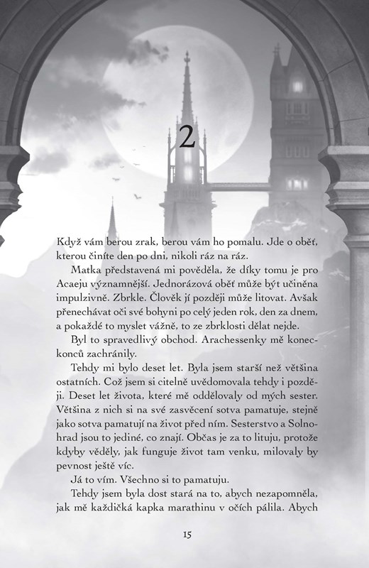 Sylina obětovala bohyni osudu svou duši, svobodu i zrak. Ze zbídačeného sirotka se vypracovala v disciplinovaného zabijáka s jediným cílem: svrhnout tyranského vládce království Glaea. Když však k jeho břehům připluje brutální upíří dobyvatel, dostane Sylina ještě nebezpečnější úkol: infiltrovat armádu, získat jeho důvěru... a zasadit smrtící úder. Ale Atrius má v sobě něco temného, co Sylinu nečekaně přitahuje. Rozkazy zní jasně, ale zakázané spojení mezi nimi sílí. Co vše kvůli tomu skončí v plamenech?