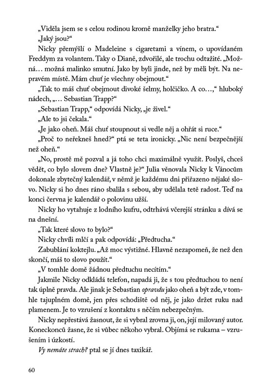 „Do tří měsíců budu mrtvý. Přijeďte, odvyprávím vám svůj příběh.“ Samotářský spisovatel detektivních románů Sebastian Trapp do svého domu v San Francisku pozve Nicky Hunterovou, se kterou si dlouhá léta dopisuje. Expertka na krimi žánr postupně začne rozplétat případ, který je mrazivější než fikce – dvacet let staré zmizení autorovy první ženy a jejich syna. Spáchal snad dokonalý spisovatel dokonalý zločin?