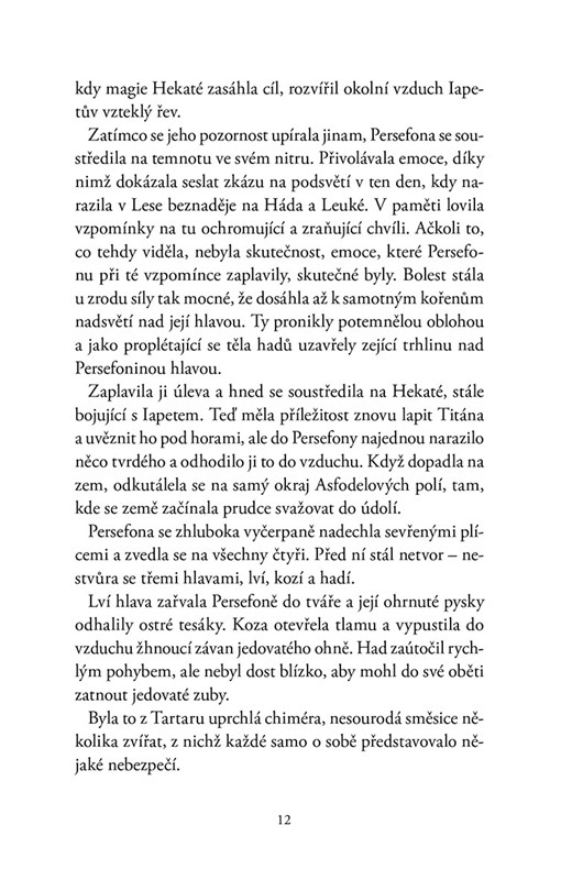 Persefona si nikdy nemyslela, že náhodné setkání s bohem podsvětí Hádem navždy změní její život – ale stalo se. Také si nikdy nemyslela, že zažije boj o záchranu lidstva a válku mezi bohy. Aby s tímto chaosem skoncovala, musí se ponořit do temnoty vlastní duše a strhnout okovy všem svým nově objeveným stránkám: bohyni, manželce, královně podsvětí. Kvůli těm, kteří jsou jí drazí, kdysi uzavírala nebezpečné dohody. Teď pro ně půjde rovnou do války.