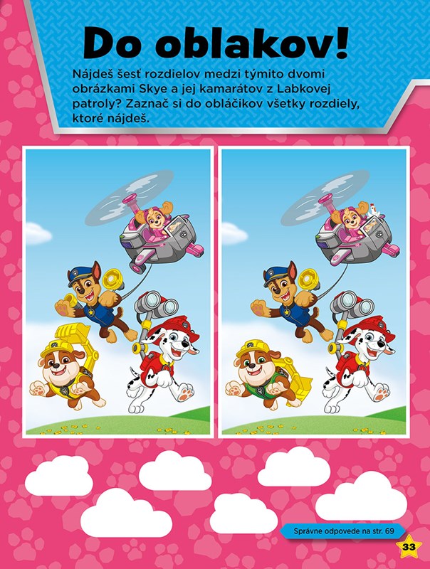 Všetky labky do centrály! Chcete si užiť veľa zábavy? Na nič nečakajte a pustite sa s obľúbenými záchranarskými šteniatkami z Labkovej patroly do hrania, čítania a riešenia zamotaných úloh! V tejto knihe nájdete hádanky, rébusy a príbehy, pri ktorých nebudú chýbať ani vaši štvornohí kamaráti! Vydajte sa po boku animovaných hrdinov do akcie a trénujte s nim počítanie, kreslenie, hľadanie rozdielov a veľa ďalšieho.