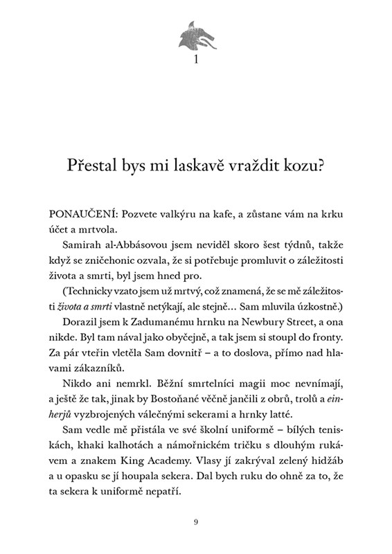 Jmenuju se Magnus Chase. Loni touhle dobou jsem vybíral popelnice, spal jsem pod mostem, flákal se s kámoši Hearthem a Blitzem, vyhýbal se policajtům a snažil se prostě přežít.