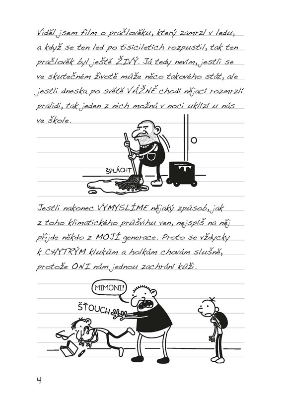 Když Gregovu školu zasypou hromady sněhu, promění se čtvrť Heffleyových v jedno velké zimní bojiště. Nepřátelské skupiny soupeří o území, staví obrovské sněhové pevnosti a válčí v mnoha nezapomenutelných koulovačkách. V nastalém zmatku čeká Grega a jeho nejlepšího kamaráda Rowleyho Jeffersona boj o život. Dokážou navázat důležitá spojenectví a vyhnout se zradám? A co až sníh roztaje? Stanou se z nich hrdinové?
