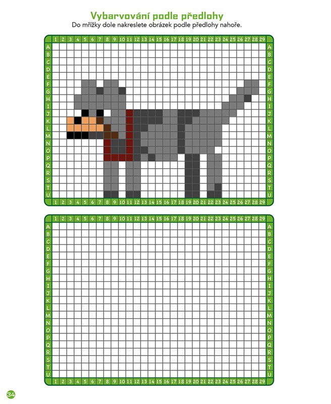 Vybarvování podle předlohy, zrcadlové a skryté obrázky...