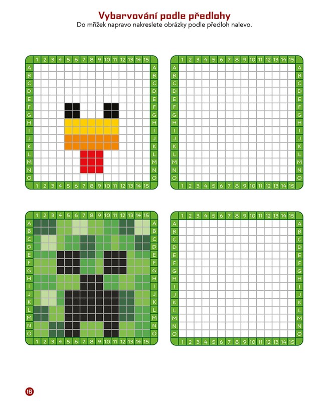 Popusťte uzdu své minecraftové fantazii a vybarvěte těchto 70 zábavných pixelových omalovánek! Uvnitř najdete vybarvování podle předlohy, zrcadlové a skryté obrázky... V této nové knize najdete ještě více příšer: creepery, ohniváky, všechny druhy golemů, lávouchy, draky z Konce a spoustu dalších!
