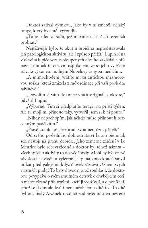 Arsene Lupin – nejslavnější ze všech lupičů historie. Ukradl dokonce Eiffelovu věž! V Lenormandově neotřelé detektivní sérii potkáváme nového Lupina, který po své brilantní kariéře zločince opustil nezákonné praktiky a rozhodl se vyléčit z „cyklotymní lupičské neurózy“. Psycholog a průzkumník duší doktor Kloucke rád tomuto složitému pacientovi poskytuje terapii, ovšem nikoli zadarmo. Lupin se tedy rozhodne využít své jedinečné schopnosti rozkrývat chování zločinců a založí detektivní kancelář. Při šetření krádeže vzácného autoportrétu Eugena Delacroixe zjistí, že ho zfalšoval neznámý umělec jménem Pablo Picasso. Jak je ale do případu zapletena neodolatelná tanečnice Mata Hari?