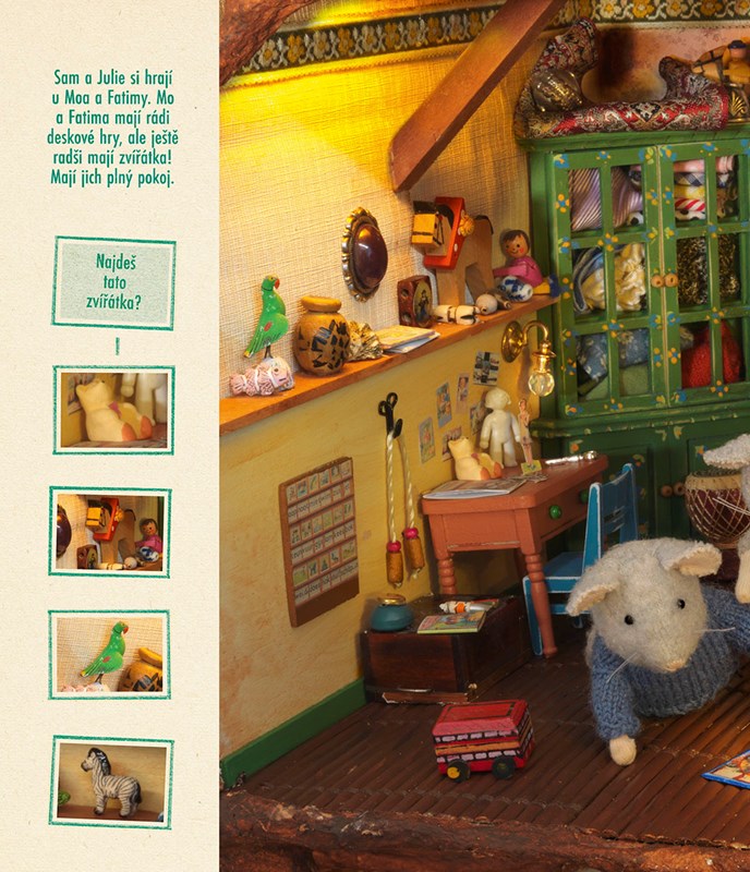 Spousta zábavy při hledání zaručena! V této knížce budete společně se Samem a Julií hledat ty nejmenší detaily v Domě myšek. V obchodech, dílnách, pokojích, kuchyních i venkovních prostorách se toho totiž dá hodně objevit. Stačí se jen dobře dívat!