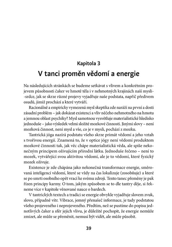Kniha obsahuje také: kapitoly s doporučeními, která podporují dobrou péči o jednotlivá centra, náměty k meditačním cvičením a tvůrčí integraci, poetické modlitby, jako nástroj spojení s konkrétními tématy, jedinečnou syntézu tantricko-buddhistického učení o pěti buddhovských rodinách s archetypy živlů a pěti čaker v indické tradici hatha jógy, styčny témat transpersonální psychologie a tantry (bardo jóga, rozšířené stavy vědomí) a nakonec i vybrané úryvky z tantrických textů.