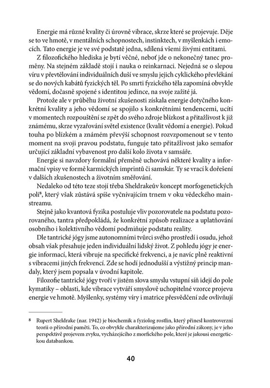 Poskytuje přehled tantricko-jógové energetiky a její praktický přesah do našeho každodenního prožívání. Klade důraz na vztah principu a funkce, setu a settingu.