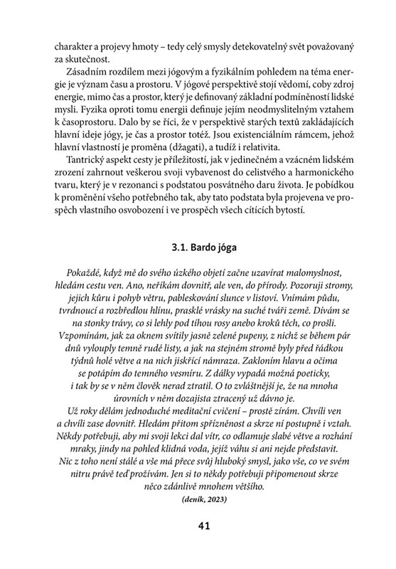 Autorčin přístup je nedogmatický a mísí se v něm osobně lidská zkušenost dlouhodobě praktikující jógínky se zkušenostmi lektorskými i zkušenostmi získanými studiem.