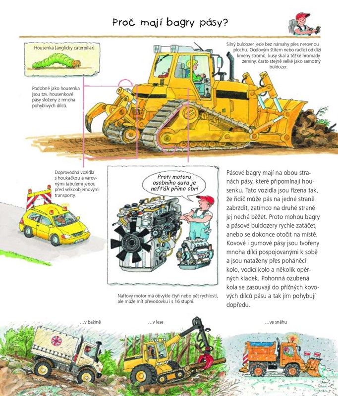 Jaké existují náklaďáky? Jak pracuje traktor? Proč mají bagry pásy? Na tyto i další otázky naleznete odpovědi v další knížce z oblíbené edice Už vím proč. Vše o strojích na čtyřech, ale i více kolech.