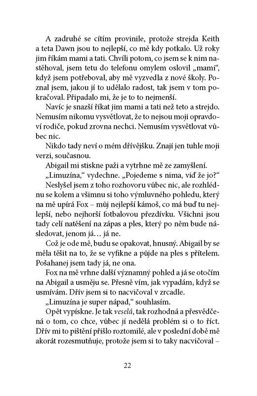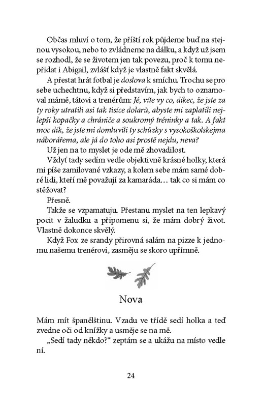 O několik let později je Nova ztracená nejen ve světě, ale i sama v sobě. Neustálé stěhování a přizpůsobování se novým školám z ní udělaly mistryni v zapadání do cizích životů, ale ona sama už neví, kdo vlastně je. Zato Sam má jasný plán: vysoká škola, fotbal, přítelkyně Abigail. Žádné odchylky. Žádné pochybnosti. Jenže co když ten plán není jeho, ale všech ostatních? Pak se ale nemožné stane skutečností a Nova na další nové škole pozná kamaráda z dětství…