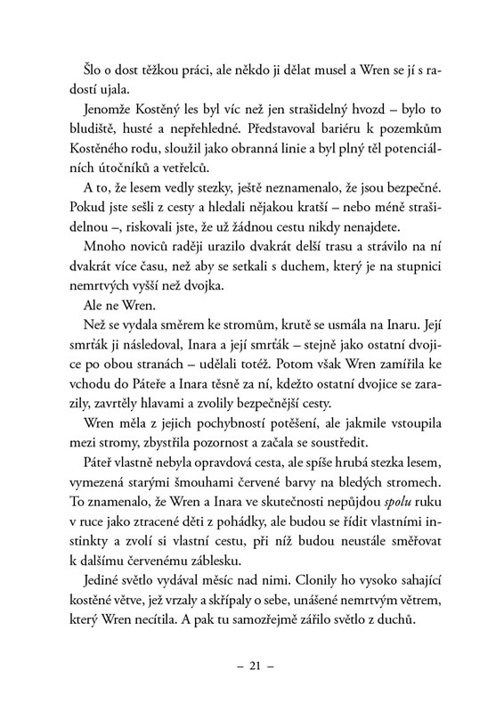 Stát se valkýrou – bojovnicí proti duchům – je pro kostitepkyni Wren šancí, jak upevnit své místo ve vznešeném Kostěném rodu. Když se ale stane obětí zákeřné léčky, vykáže ji společenství do pustiny za hraniční zdí, kde se to hemží nemrtvými. Jediný způsob, jak se dostat zpět, je spojenectví s Julianem z nepřátelského Železného rodu. Wren s ním zprvu neustále bojuje, ale ukáže se, že jeden druhého zoufale potřebují. Jen spolu mohou zabránit děsivému spojenectví, které vzniká mezi živými a nemrtvými…