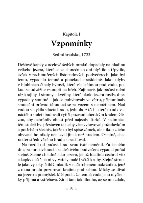 První ze tří částí rozvětveného příběhu o krvi, smrti a slzách. Příběhu o tom, že láska je někdy silnější, než bychom sami čekali. Příběhu o upírech. Kniha je plná zvratů a nečekaných rozuzlení, která mají čtenáře nejen vyděsit, ale i pobavit a poučit. Provází ho napříč různými historickými obdobími od středověku do 18. století a seznamuje s dobovými reáliemi. Hlavním hrdinou (či spíše antihrdinou) první části je Miodrag – voják, který začínal v rakouské armádě a jehož životní příběh je doslova prosycen krví, násilím, sexem a nenávistí. Je to ale i jakýsi psychologický portrét. Jaké zkušenosti utvářejí charakter jedince? Může se člověk změnit?