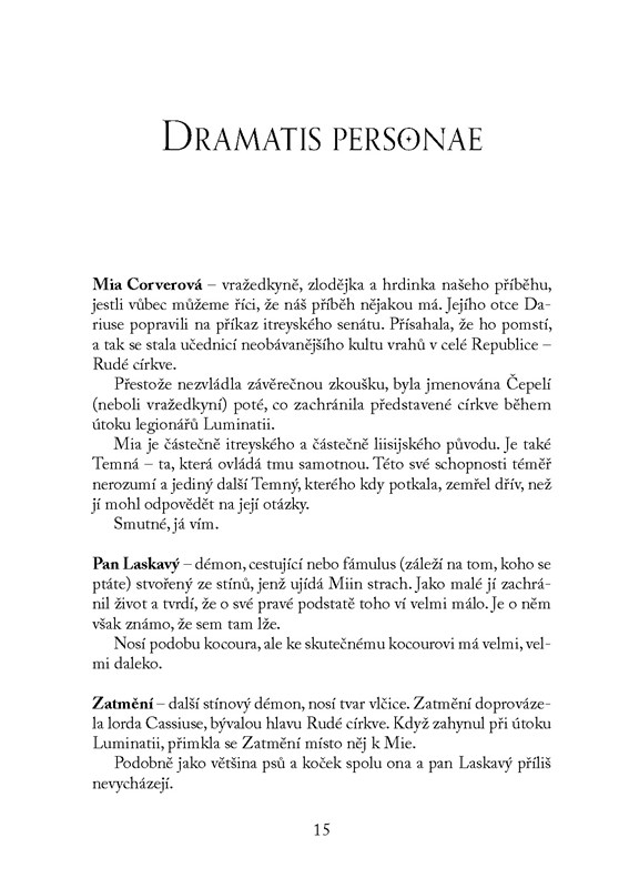 Nemilosrdná vražedkyně pokračuje ve své cestě za pomstou. Mia Corverová se nakonec stala Čepelí Rudé církve, avšak mnozí představení si nemyslí, že si to opravdu zasloužila. Když vyřizuje krvavé záležitosti v odlehlých končinách Republiky, má k zabití konzula Scaevy a kardinála Duoma pořád dost daleko a k pomstění své rodiny zrovna tak. Po střetnutí se smrtonosným nepřítelem začne navíc mít pochyby o fungování Rudé církve. Když Mia zjistí, že Scaeva i Duomo, kteří téměř nevychází na veřejnost, se osobně zúčastní velkých her v Božím hrobě, neváhá a stane se členkou jednoho z gladiátorských kolegií, aby mohla využít příležitosti a skoncovat s nimi. Mezi zdmi kolegia se rodí spiknutí a počet mrtvých neustále narůstá. Mia si bude muset zvolit mezi věrností a pomstou a odhalí tajemství, které by mohlo naprosto změnit celý její svět.
