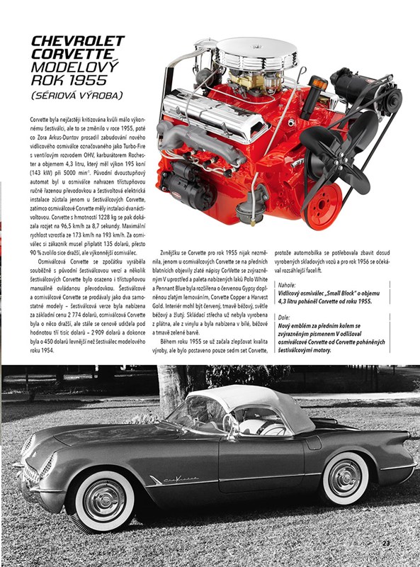 Chevrolet Corvette - ikonický americký sporťák, jenž si získal srdce řidičů nejen ve své domovině, je skutečnou legendou a ztělesněním představ o sportovním automobilu. Již 70 let nabízí nadšeným majitelům i závodním pilotům na okruzích jedinečné jízdní zážitky, adrenalin a hlavně spoustu zábavy. Pojďme se tedy podívat na kompletní historii i současnost modelu, který je již po celá desetiletí etalonem stylu a rychlé jízdy - od prvních návrhů a prototypů, přes všechny řady a motorizace, limitované a speciální edice a závodní úspěchy. Vše doprovázené unikátními fotografiemi.