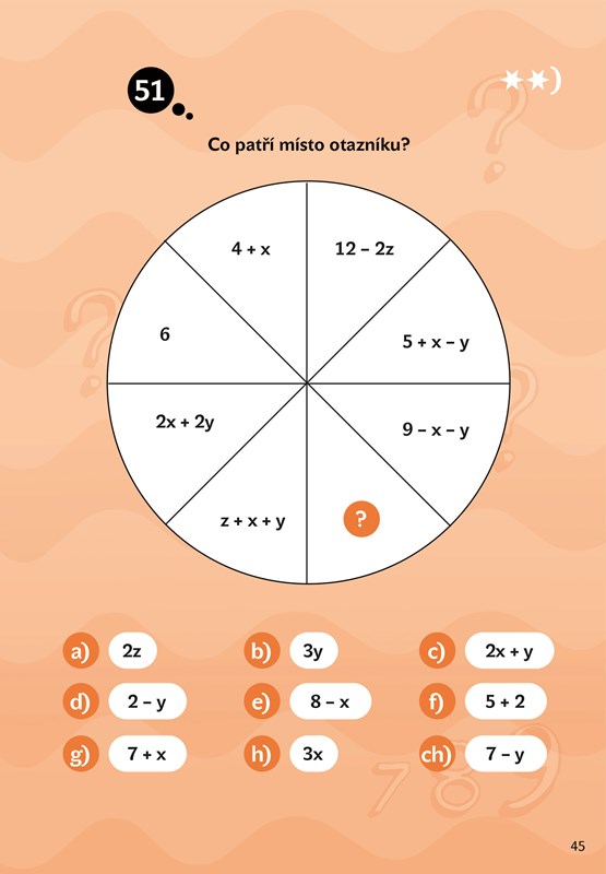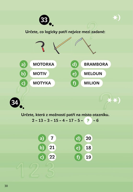Pálí to vašim dětem, ale příklady z učebnice matematiky je nebaví? Hledáte atraktivnější formu, která bude bavit, ne nudit? Nabídněte jim tuto publikaci! Ocení ji ti, kteří hledají mezi informacemi souvislosti, logiku a smysl. Úkoly jsou zaměřeny na rozvoj matematicko-logické stránky intelektu. Najdete zde zebry, algebrogramy, slovní úlohy, číselné řady či šifry. Nechybí cvičení na prostorovou a plošnou představivost nebo logiku děje.