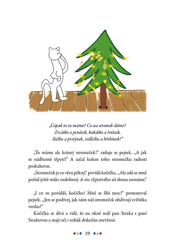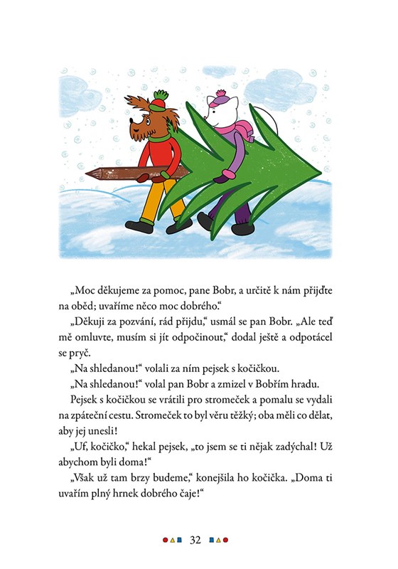 V novém příběhu chtějí pejsek s kočičkou oslavit Vánoce jako lidé. A co by to bylo za Vánoce, kdyby na nich chyběl vánoční stromeček! Rozhodnou se, že půjdou do lesa pro smrček a ten si pak doma ozdobí pěkně podle obrázku, který si namalovali. Vydávají se tedy spolu do lesa a vůbec netuší, co všechno je tam čeká. Během svého putování se také seznámí se starým mručounem, panem Bobrem, s nímž zažívají mnohá dobrodružství.