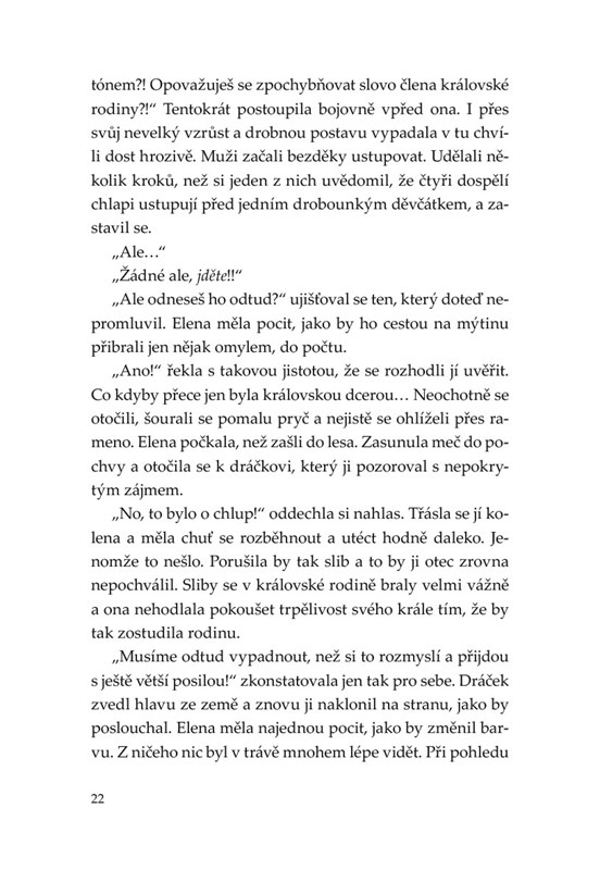 Princeznu Elenu nezajímá tanec, vyšívání ani šminky. Chce bojovat po boku bratrů a prožívat velká dobrodružství. Ani se nenaděje a její sen se začne stávat skutečností. Osudové setkání s rudým drakem Ašrakem změní malé princezně život. Musí opustit svůj domov a odjet k elfům do kouzelného lesa, kde se má naučit ovládat a hlavně skrývat magii, která jí koluje v žilách. Nejde však o žádnou prestižní školu pro mladé dámy...